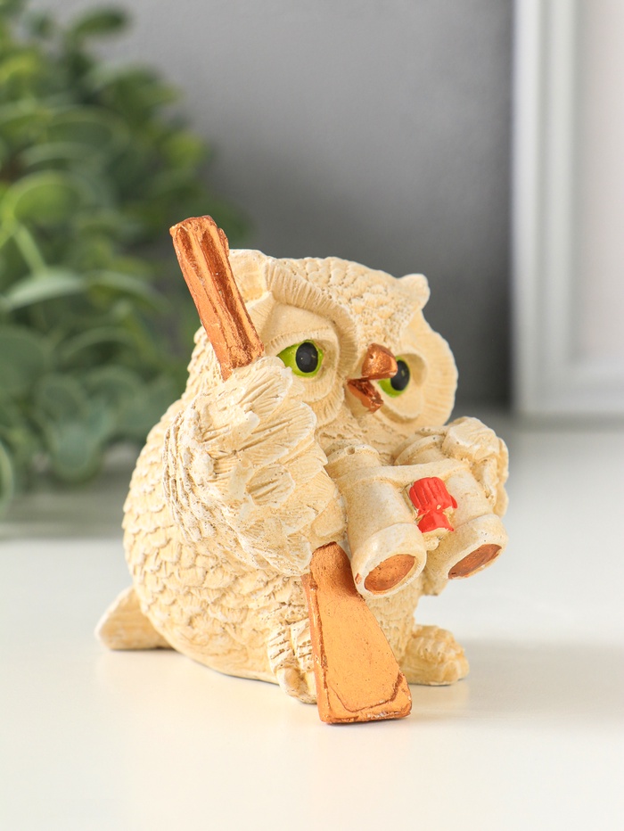 Статуэтка "Сова с биноклем" размер 8х7 см, цвет слоновая кость