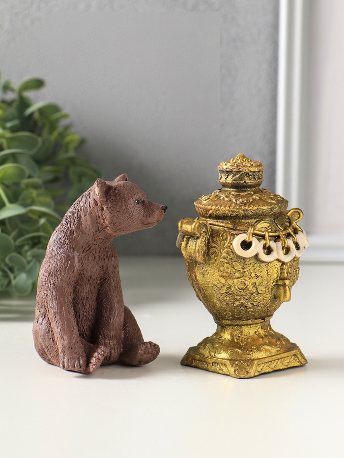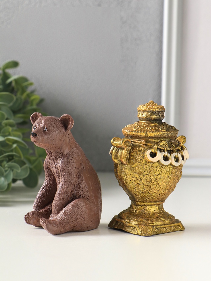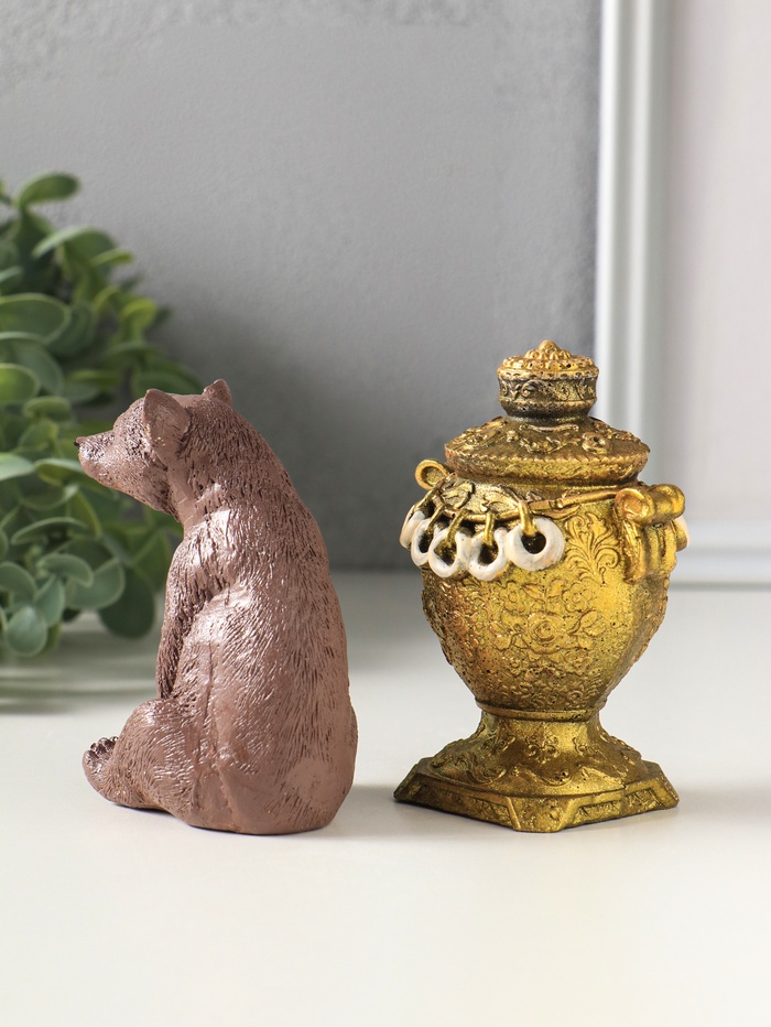 Статуэтки "Медведь с самоваром" набор 2 шт, высота 11 см