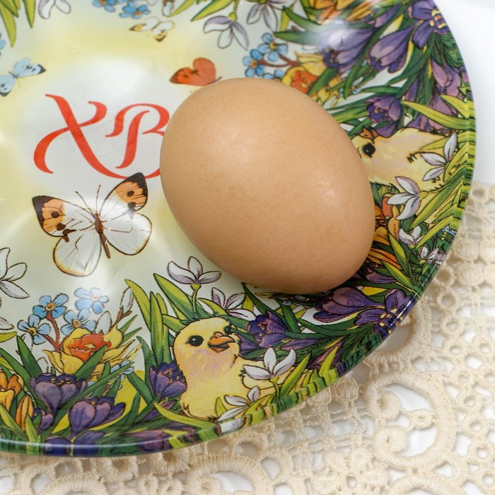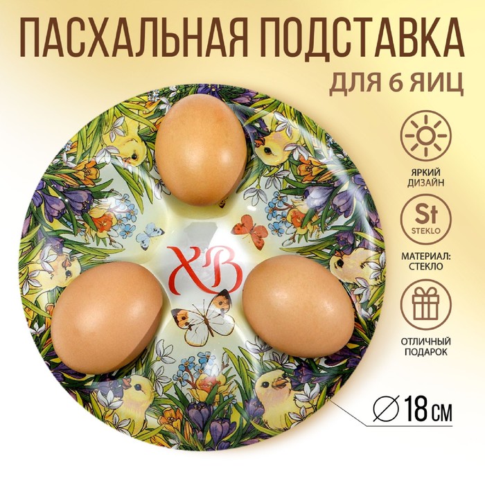 Пасхальная подставка предназначена для праздничного украшения Вашего стола в Светлый День Пасхи.По окружности подставки 6 отверстий для пасхальных яиц. Диаметр декоративной подставки - 18 см. Декоративная подставка изготовлена из стекла.