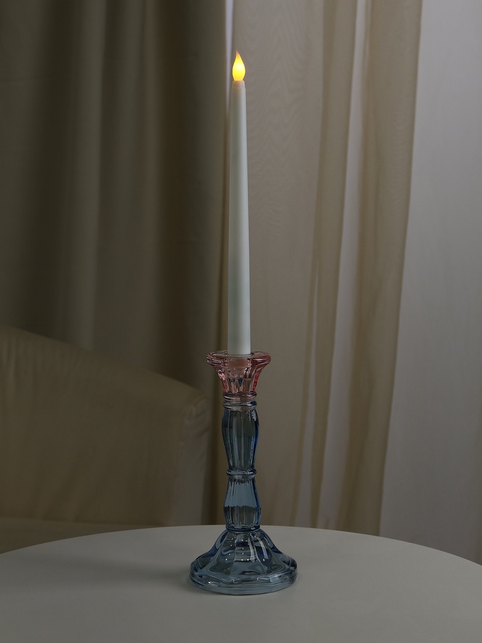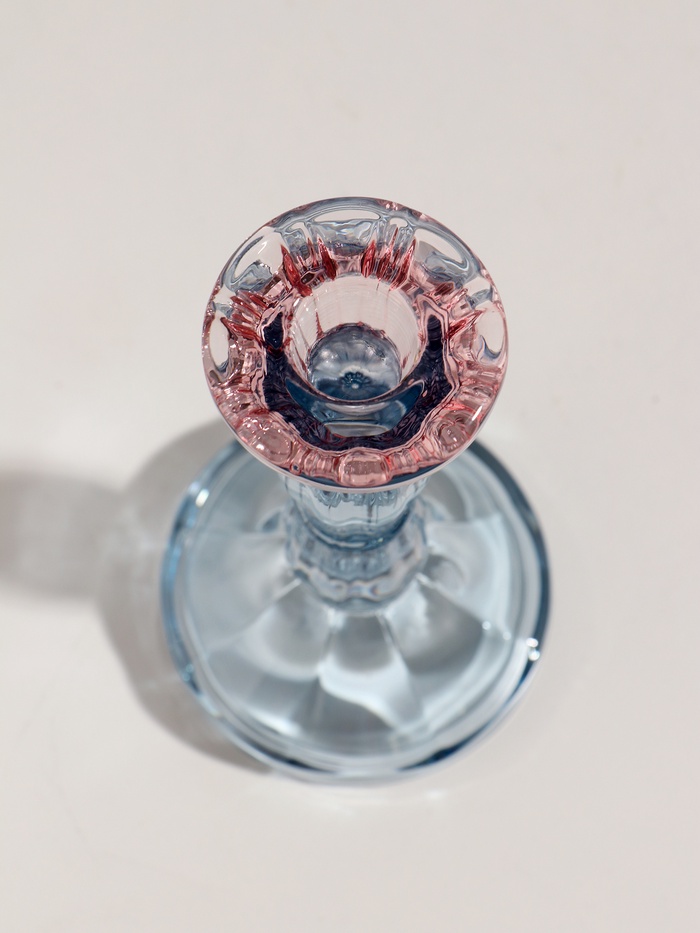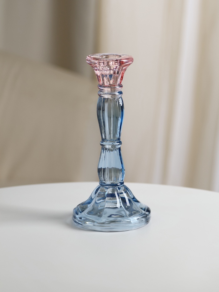 Стеклянный подсвечник с градиентной фактурой в нежных розово-голубых тонах высотой 20 см создаёт атмосферу лёгкости и уюта в любом помещении. Его уникальное сочетание цвета и текстуры придаёт изделию глубину и выразительность, превращая обычный предмет интерьера в настоящий арт-объект.