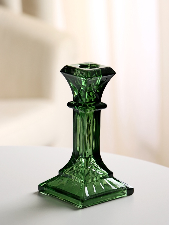 Стеклянный подсвечник на 1 свечу «Колонна прямоугольная», зелёный прозрачный, 16×8.6×8.6 см