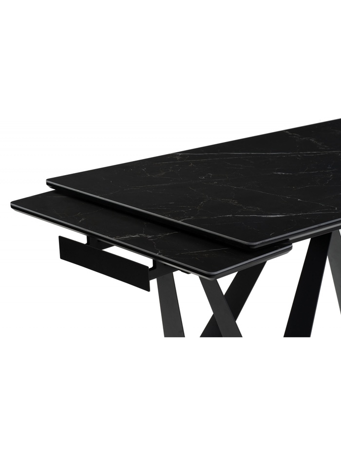 Стеклянный стол Марвин 160(220)х90х76 черный мрамор / черный