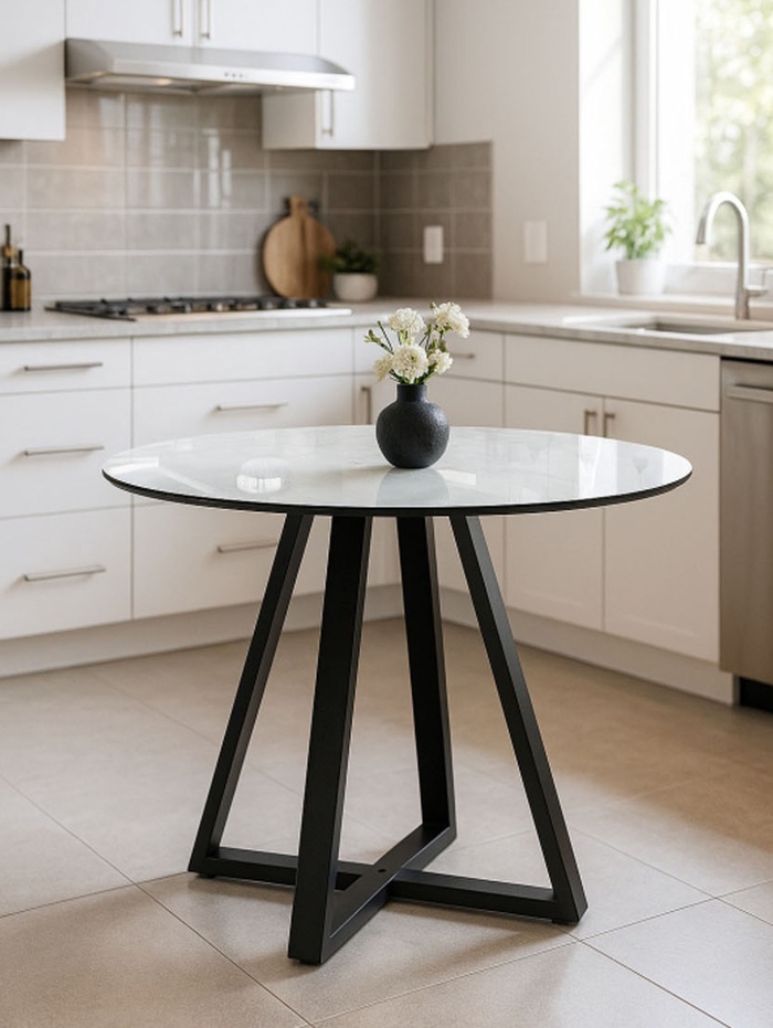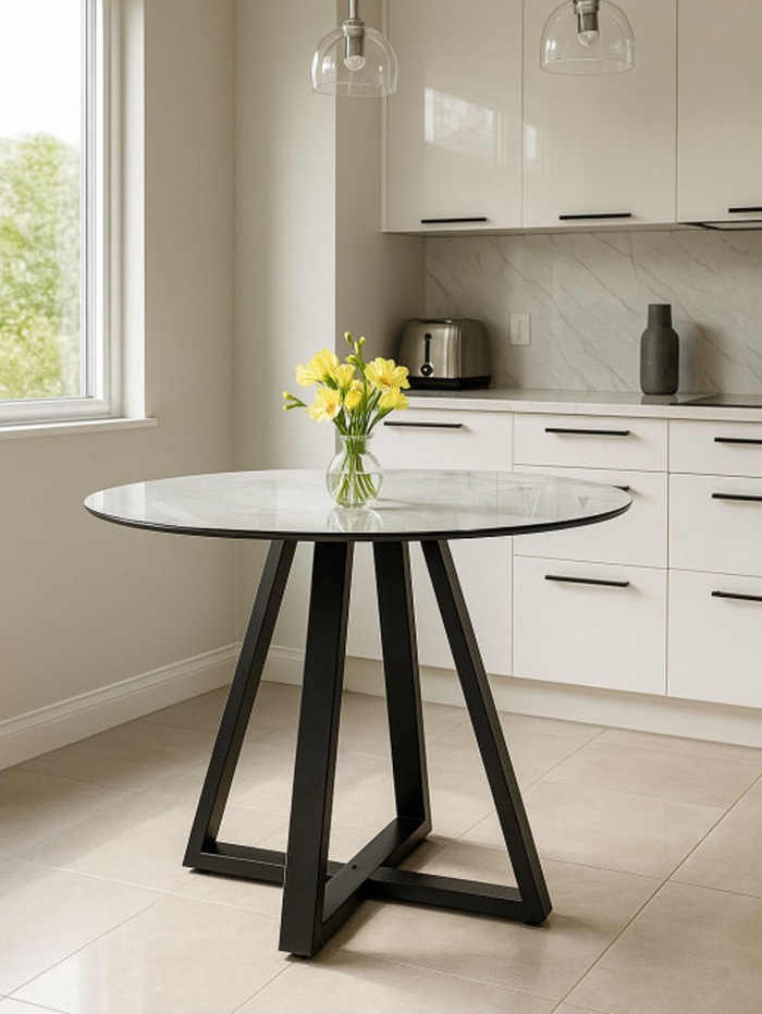 Стеклянный стол Норфолк 100 белый мрамор / черный