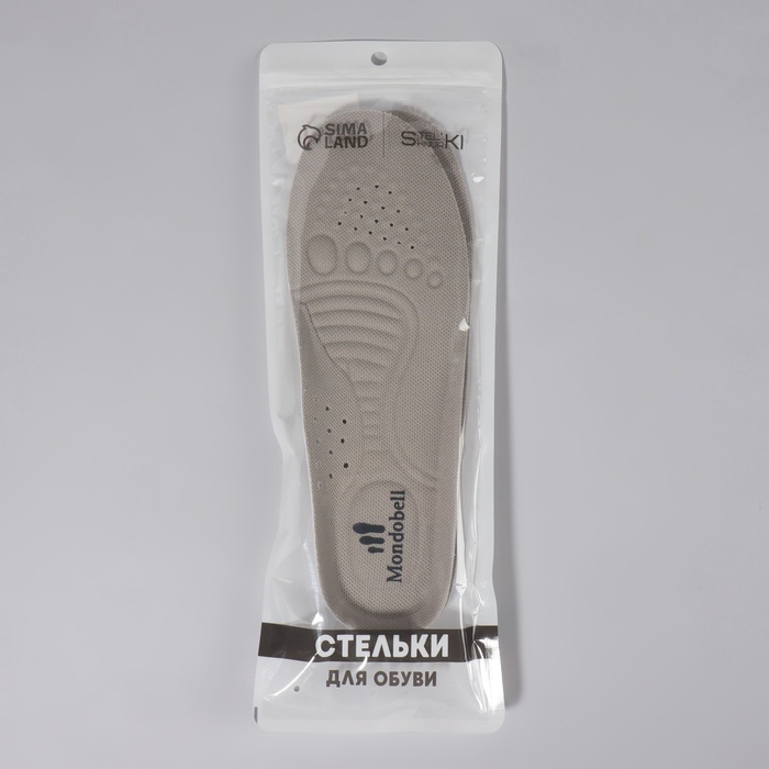 Стельки для обуви, спортивные, универсальные, амортизирующие, дышащие, р-р RU до 38, (р-р Пр-ля до 40), 25 см, пара, серые