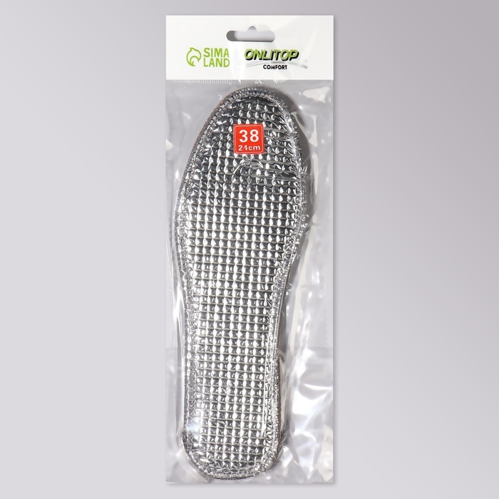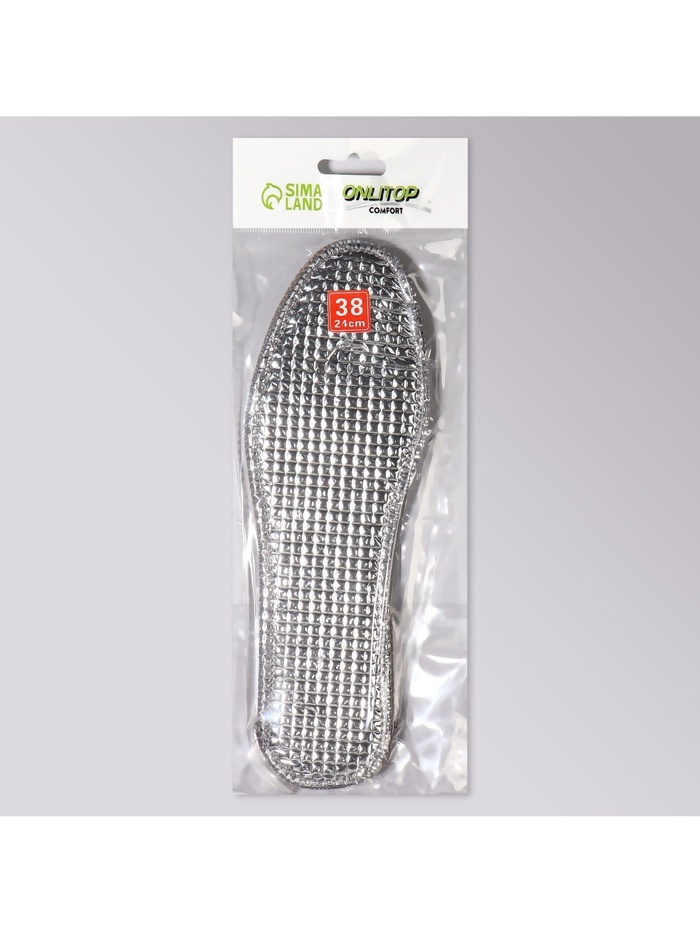 Стельки для обуви, утеплённые, двухслойные, фольгированные, окантовка, р-р RU 36 (р-р Пр-ля 38), 24 см, пара, серые