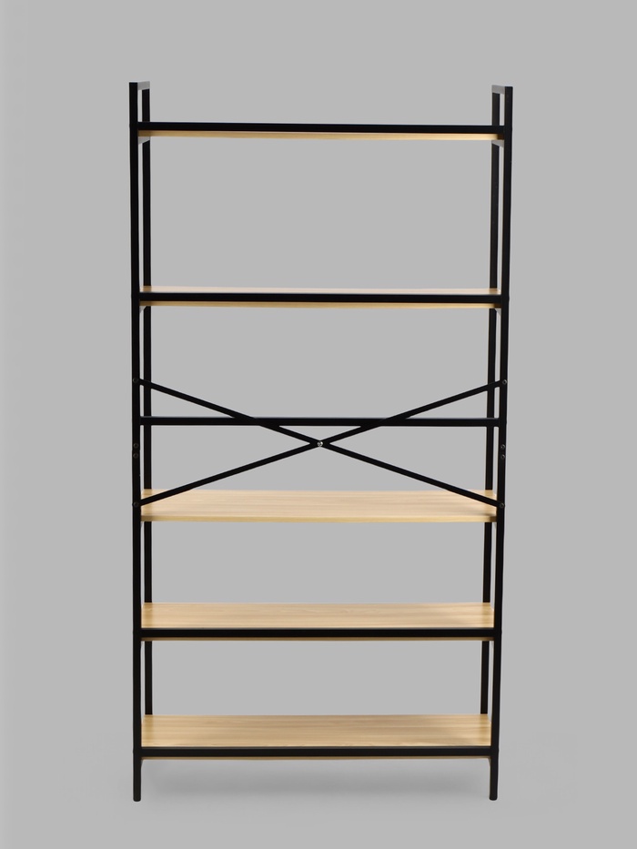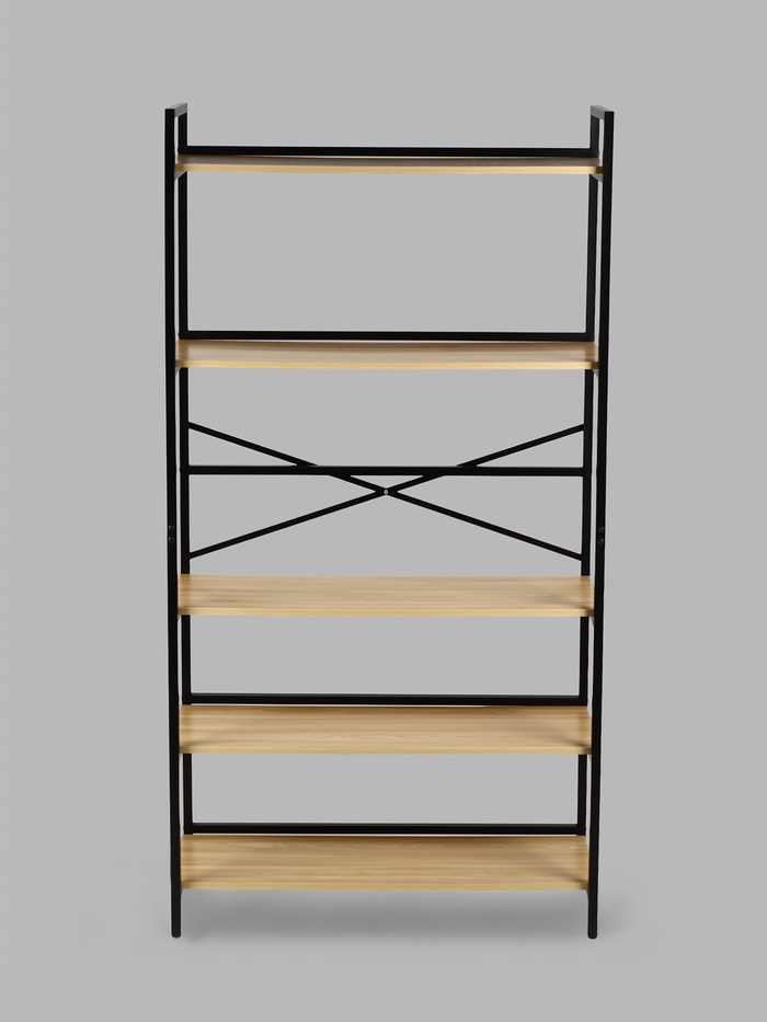 Этот стеллаж выполнен из прочного металла и дерева, что обеспечивает ему надежность и долговечность. Каждая полка выдерживает нагрузку до 40 кг, что позволяет удобно размещать на нем все необходимое — от книг и документов до инструментов и бытовых принадлежностей.