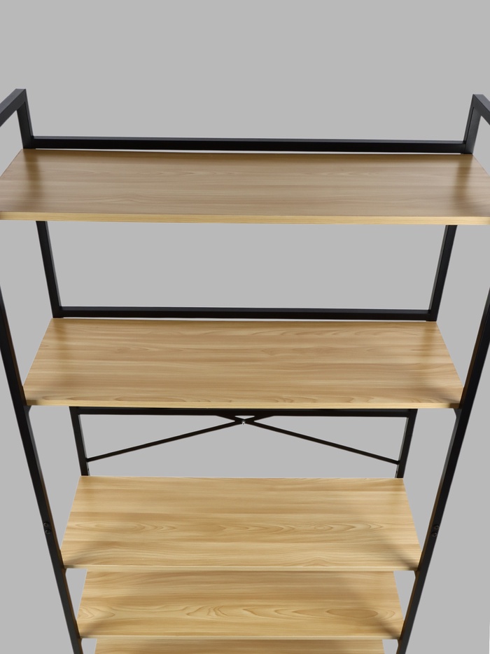 - Качество материалов: сочетание металла и дерева гарантирует прочность и долговечность, что делает стеллаж идеальным для любого использования.