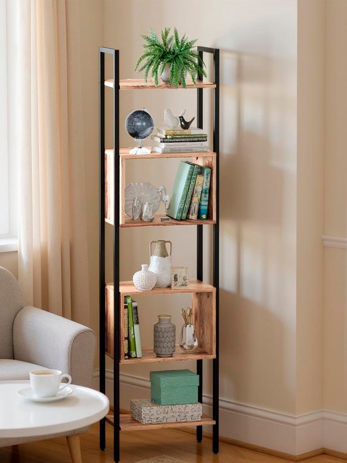 - Выдерживает нагрузку: до 20 кг на каждую полку делает стеллаж надежным хранилищем вещей.