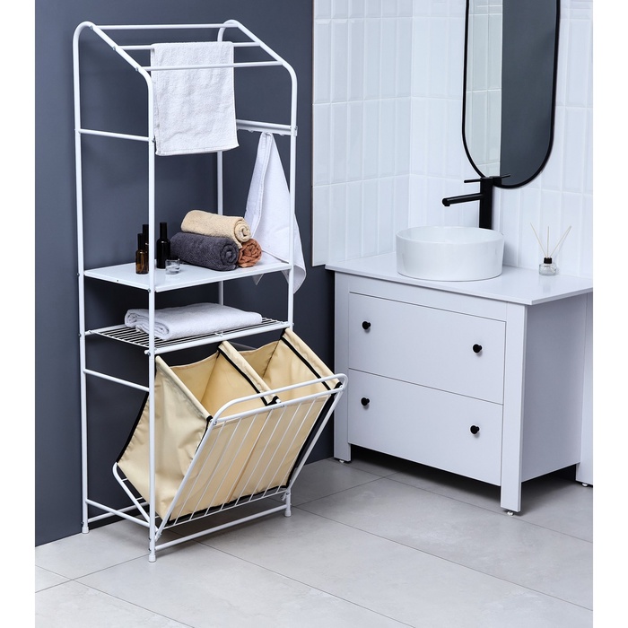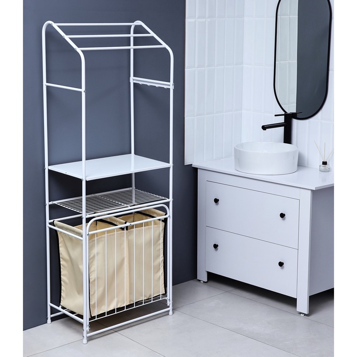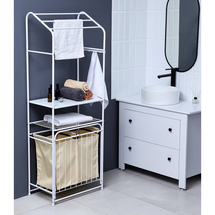 Стеллаж с корзиной для белья станет прекрасным дополнением вашего интерьера и поможет эргономично организовать пространство. На полках можно разместить самые разные вещи или использовать их для создания декоративной композиции.