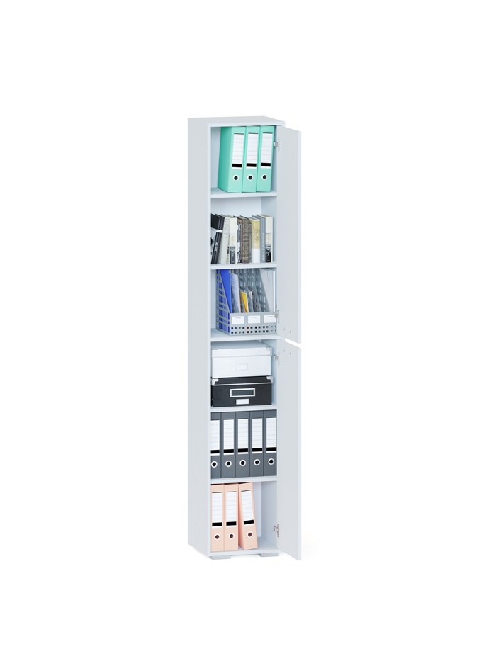 Стеллаж ШУ-351 с закрытыми полками — стильное и практичное решение для хранения документов, канцелярии и книг в офисе, а также для организации системы хранения дома. Закрытые секции помогают поддерживать порядок и защищают содержимое от пыли.