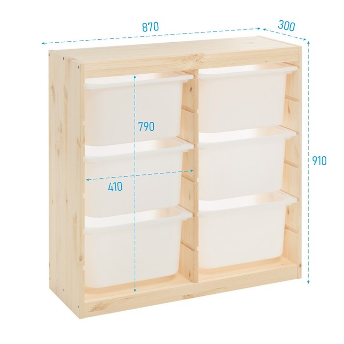 Стеллаж TROFAST-3, с контейнерами, вертикальный, Массив сосны