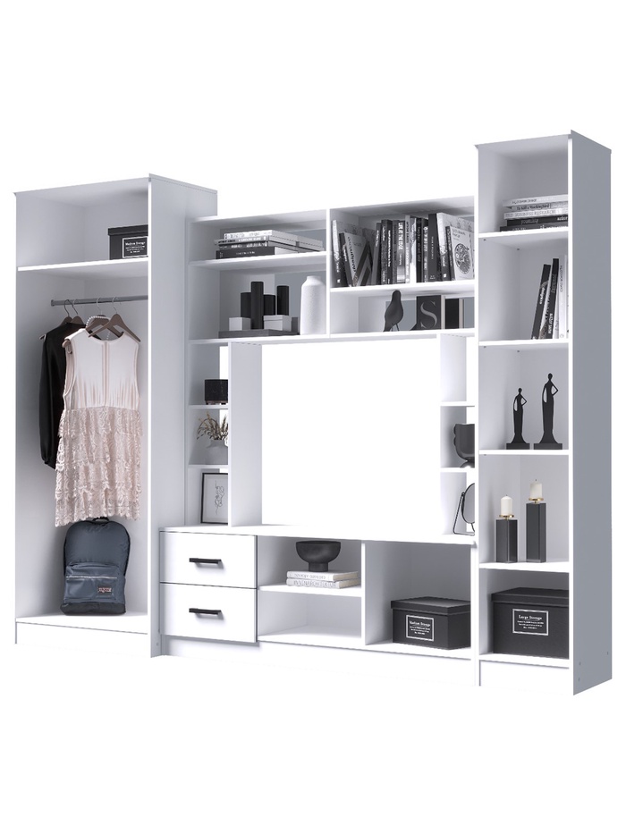 Гостиная «Марта» – практичный вариант для обустройства вашего дома, который способен привести в восторг тех, кто обладает безупречным вкусом и взглядом на эстетику. Шкаф имеет абсолютно всё, что необходимо для грамотного оформления гостиной комнаты. У него есть крупный отдел со штангой, предназначенным для хранения одежды на вешалках. Также конструкция имеет множество открытых и закрытых полок, выдвижные ящики. Они созданы как для хранения техники, аксессуаров и других вещей, так и для украшения декором.