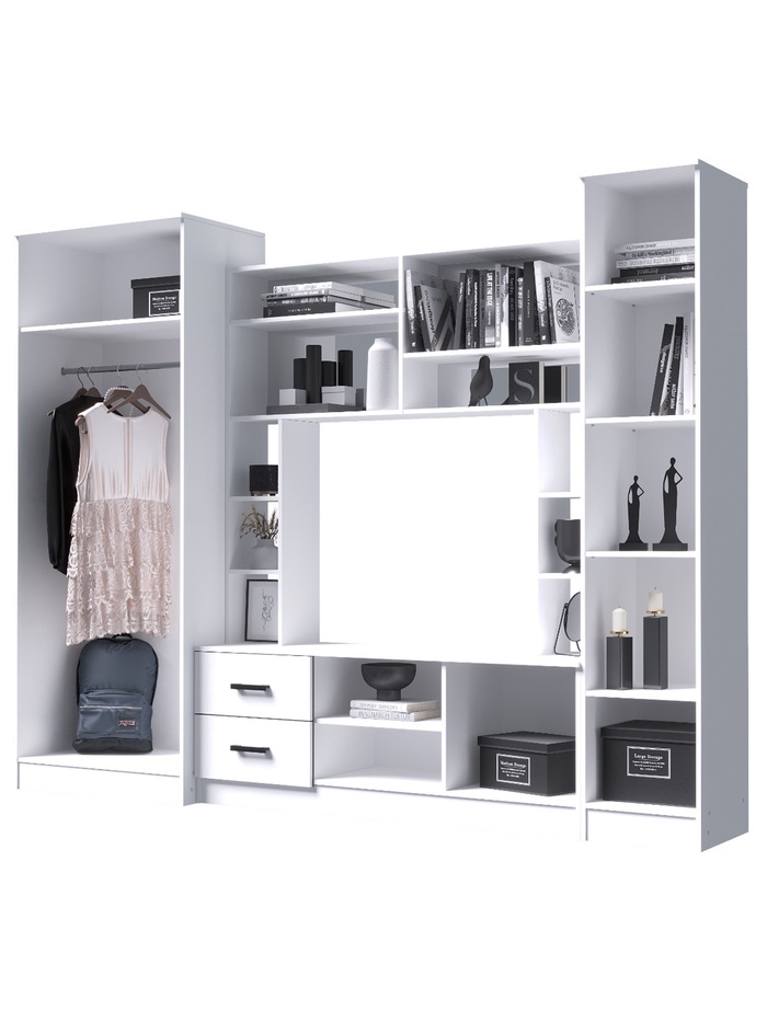 Гостиная Марта – это практичный вариант для обустройства вашего дома, который способен привести в восторг тех, кто обладает безупречным вкусом и взглядом на эстетику. Шкаф имеет абсолютно всё, что необходимо для грамотного оформления гостиной комнаты. У него есть крупный отдел со штангой, предназначенным для хранения одежды на вешалках. Также конструкция имеет множество открытых и закрытых полок, выдвижные ящики. Они созданы как для хранения техники, аксессуаров и других вещей, так и для украшения декором.