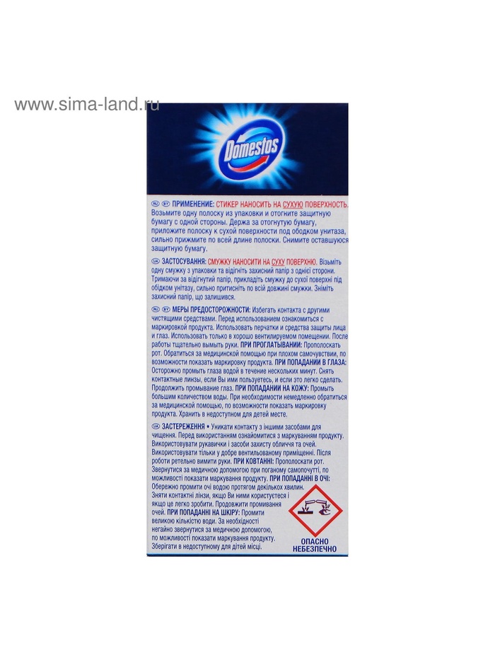 Способ применения: стикер наносить на сухую поверхность. Возьмите одну полоску из упаковки и отогните защитную бумагу с одной стороны. Держа за отогнутую бумагу, приложите полоску к сухой поверхности под ободкомунитаза, сильно прижмите по всей длине полоски. Снимите оставшуюся защитную бумагу.