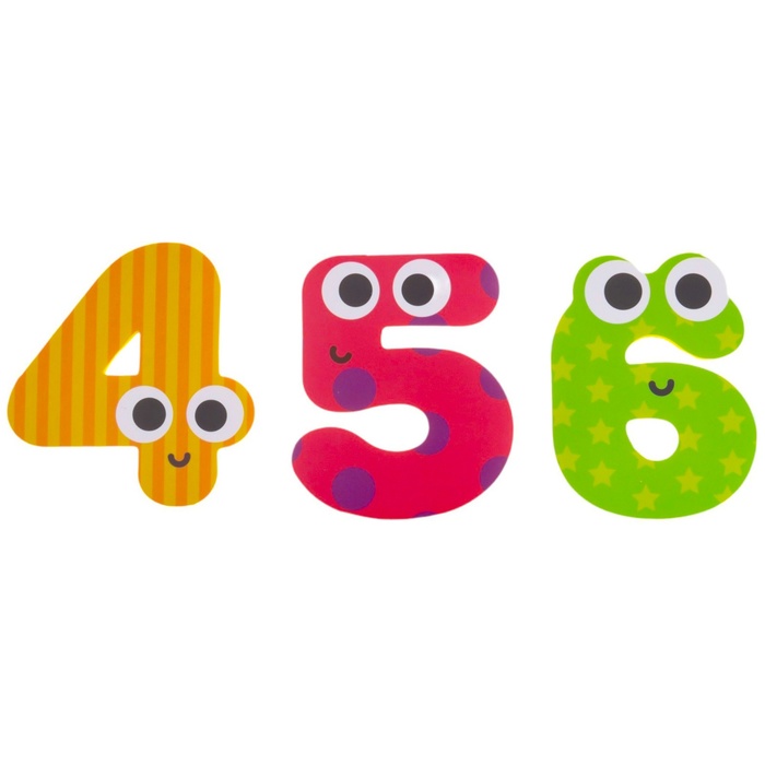 - 10 ярких цифр — каждый элемент набора представляет собой цифру от 0 до 9 с забавными глазками.