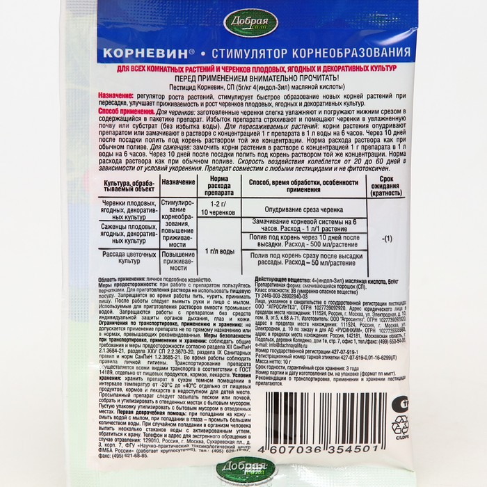 Корневин используется для укоренения саженцев плодовых, ягодных, декоративных и цветочных культур, ускорения корнеобразования при черенковании, улучшения приживаемости рассады овощных и цветочных культур при пересадках.