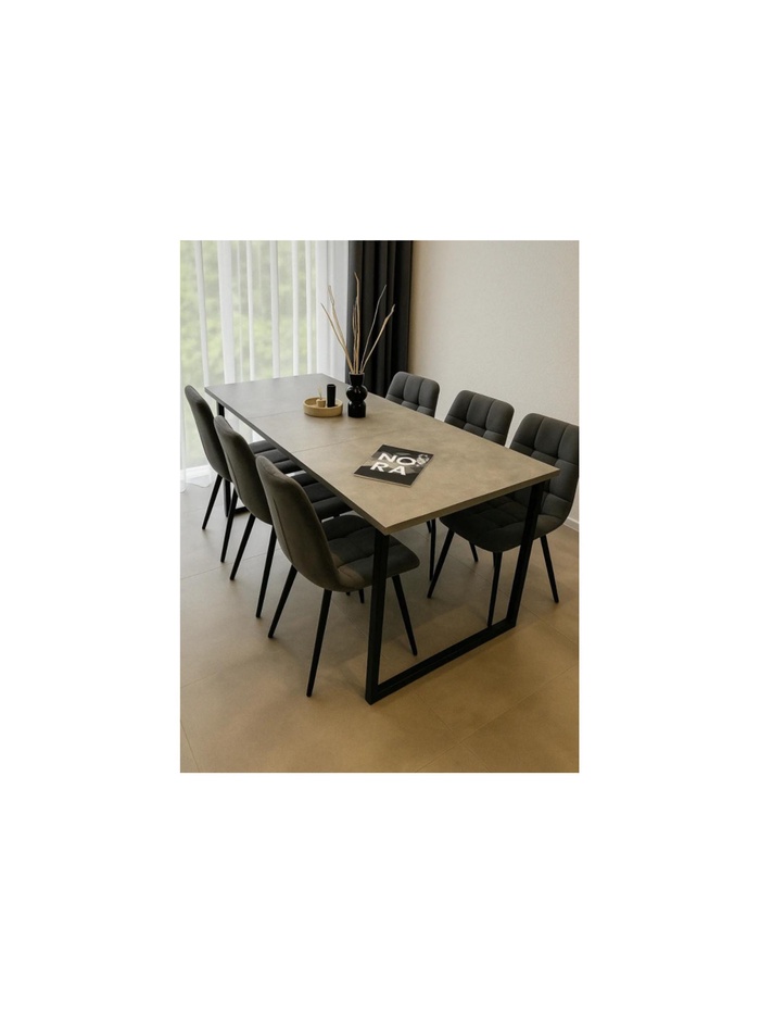 Стол деревянный Лиман 117 (157) x 77 бетон светлый / черный матовый