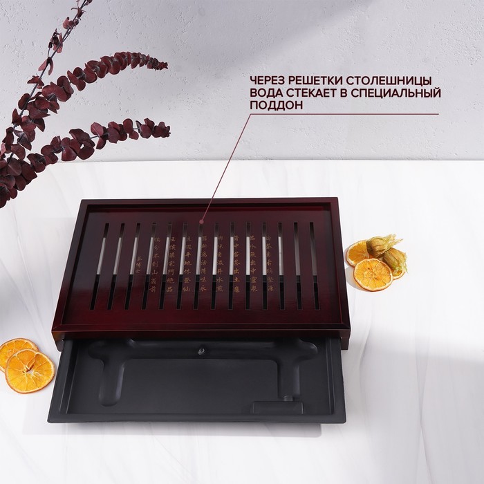 Деревянный столик для чайной церемонии с подносом «Иероглифы», 43x27.5x5 см!