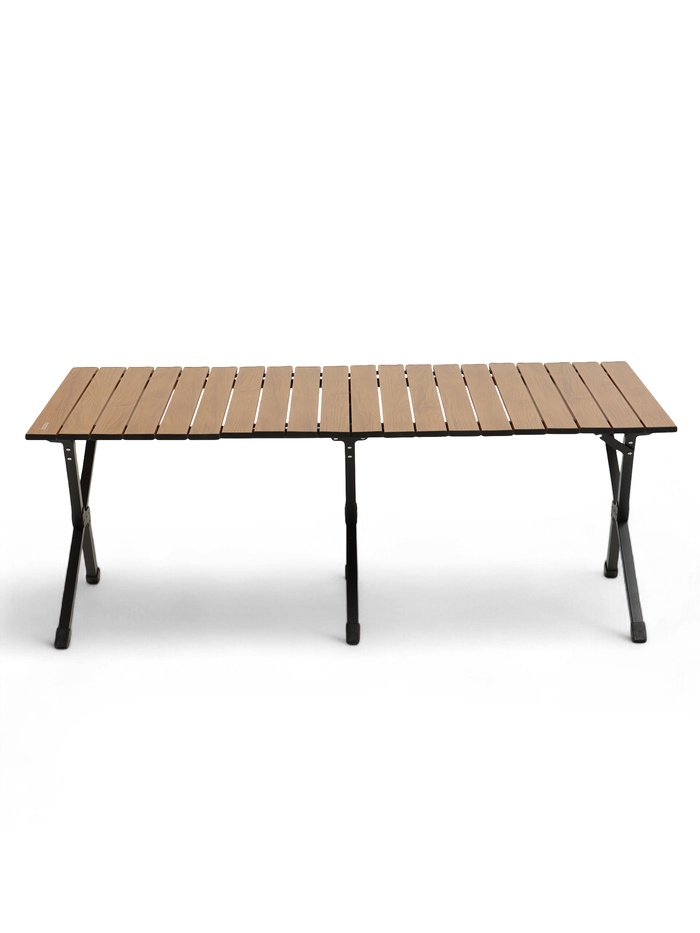 Стол Maclay подойдёт для кемпинга, размещения на придомовом участке или террасе. Изделие складное, его удобно перевозить и хранить. Столешница выполнена из алюминия под дерево. Каркас сделан из стали.