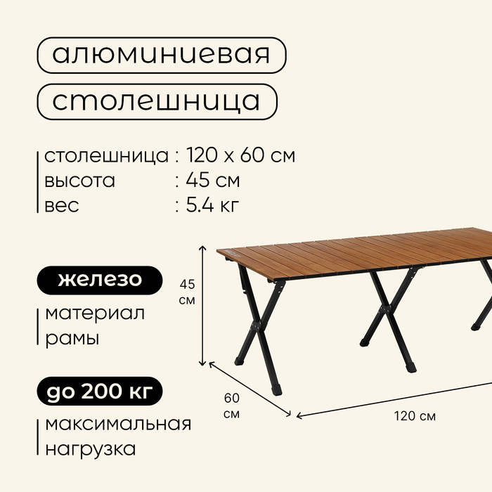 - Размер в собранном виде: 120 × 60 × 45 см.