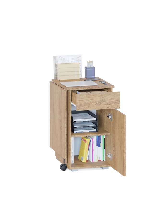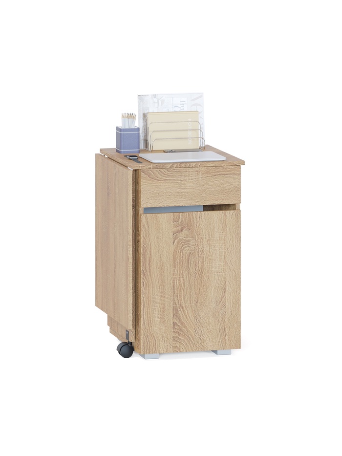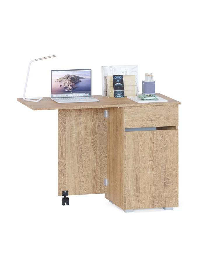 Раскладной стол СП-25 — компактное и практичное решение для организации рабочего пространства в небольших помещениях. Модель сочетает функциональность тумбы и полноценного рабочего стола, позволяя эффективно использовать доступное пространство.