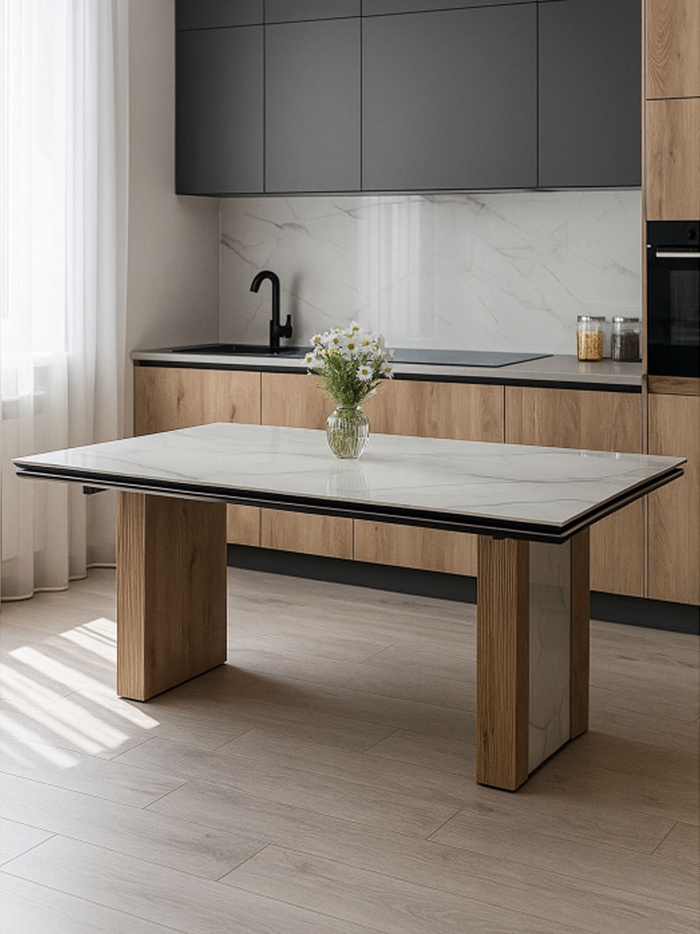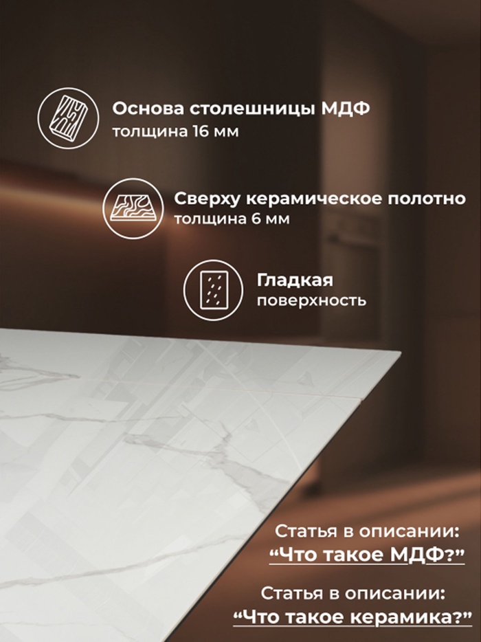 Стол керамический Бернардо 180x90 statuario titan gloss / дуб монтана