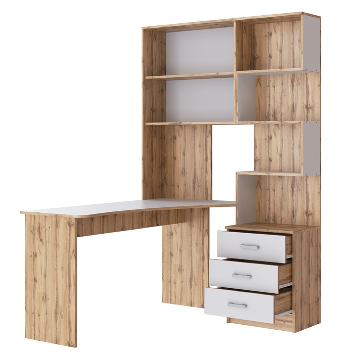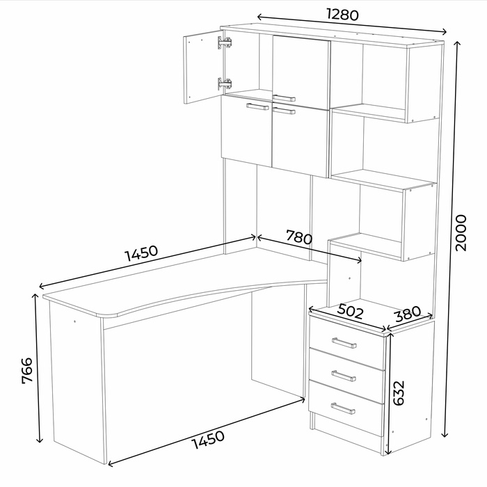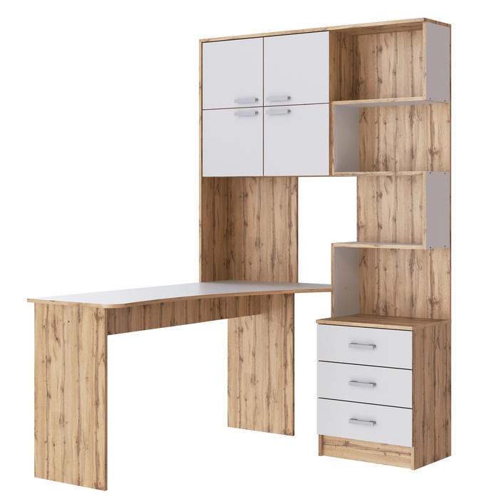 Станет подходящим решением для вашего рабочего пространства. Сочетание дуба вотан и белого цвета придаёт современный и элегантный вид, идеально подходящий для любого интерьера. Размеры (1280×2000×1450 мм) обеспечивают достаточно места для работы и хранения.