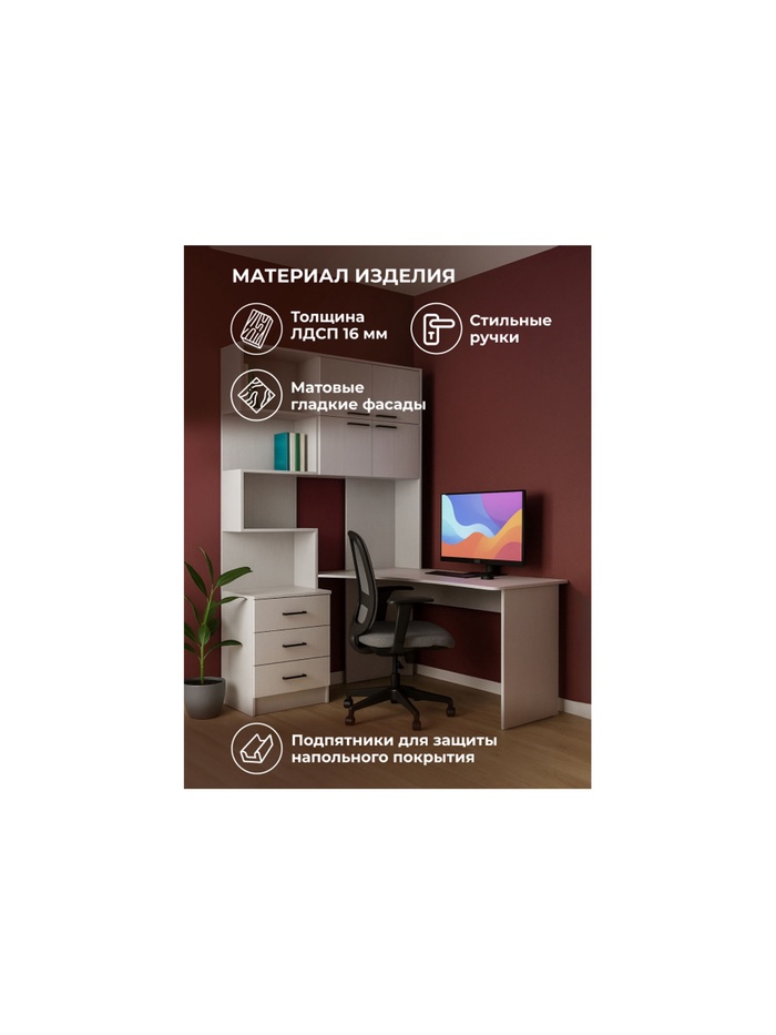 Стол компьютерный Эльброни правый белый