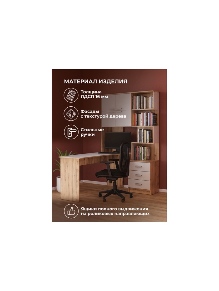 Стол компьютерный Ганор левый дуб вотан / белый