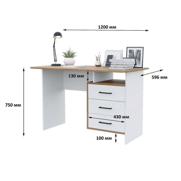 Стильное и функциональное решение для организации рабочего пространства. Стол выполнен в современном дизайне, сочетающем золотистый дуб и белый цвет, что придает ему элегантный и модный вид.
