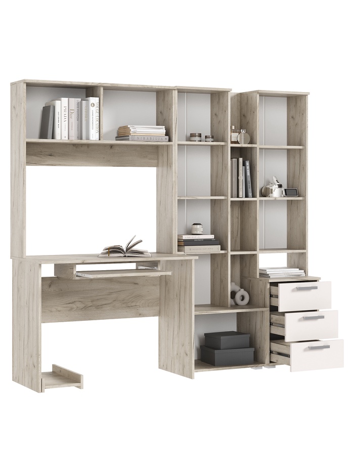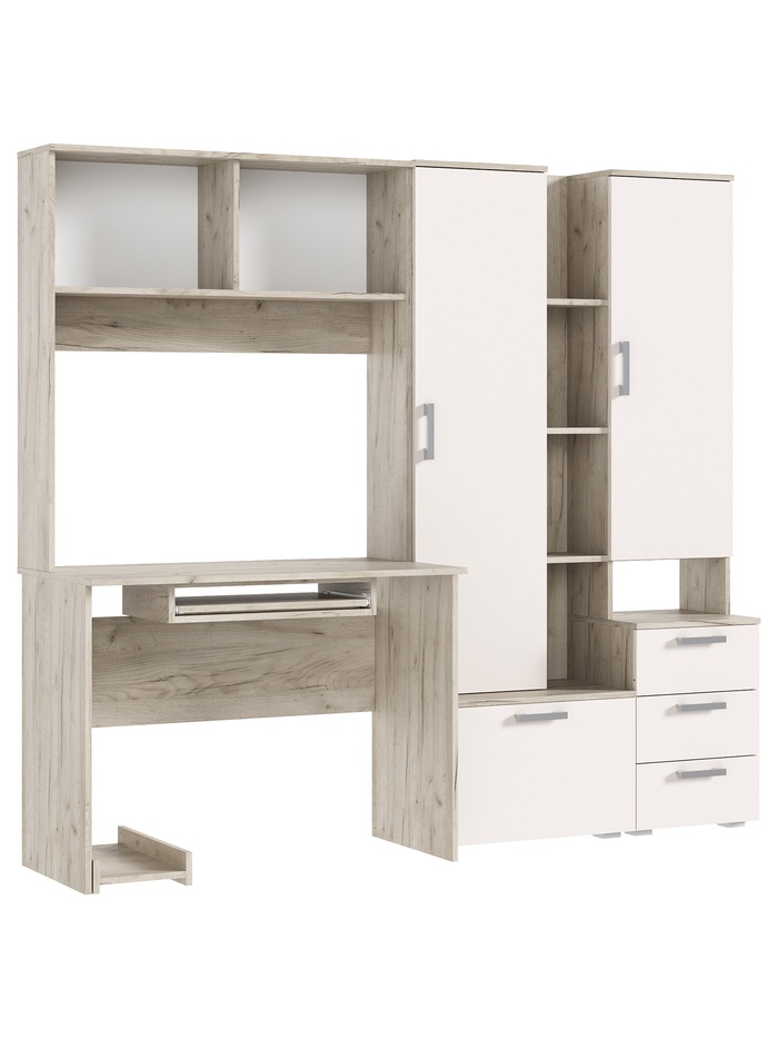 Стол компьютерный со шкафами №6, 2000х538х1796, Кашемир/Крафт серый
