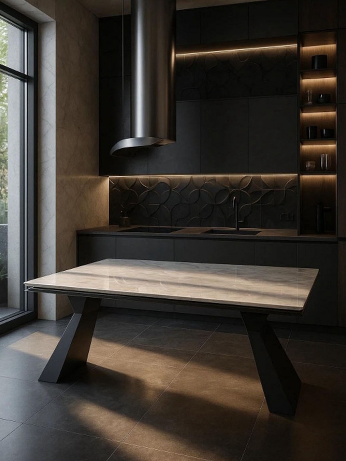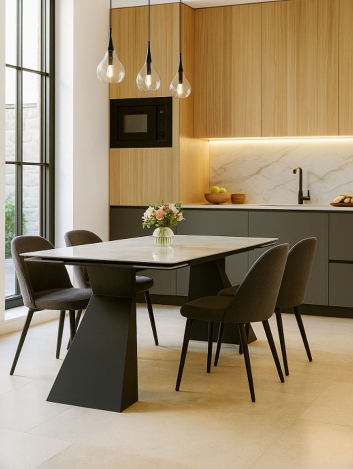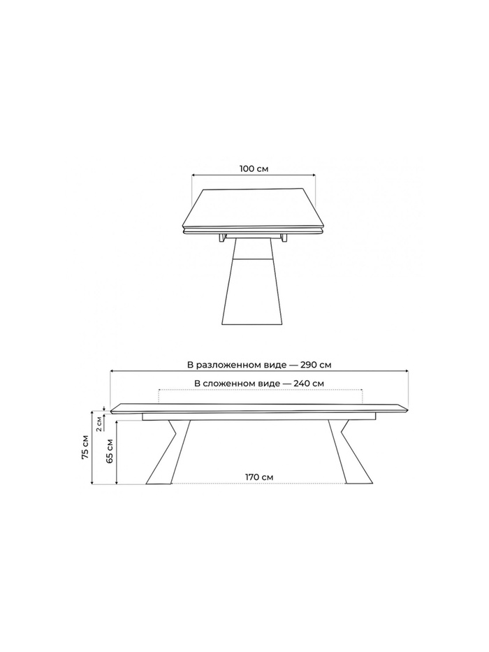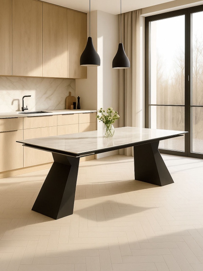 Стол кухонный керамический раздвижной «Денхольм», 2400(2900)×1000×750 мм, цвет бианко / черный