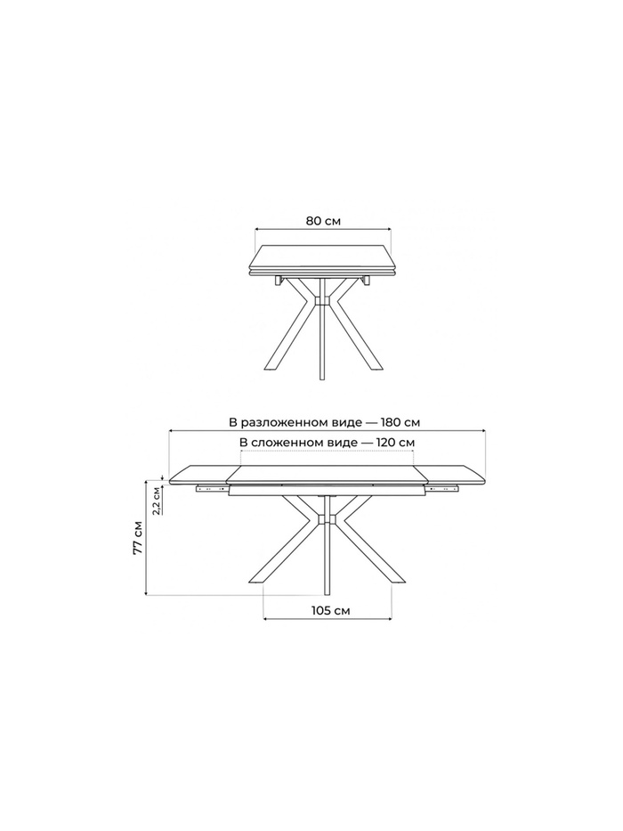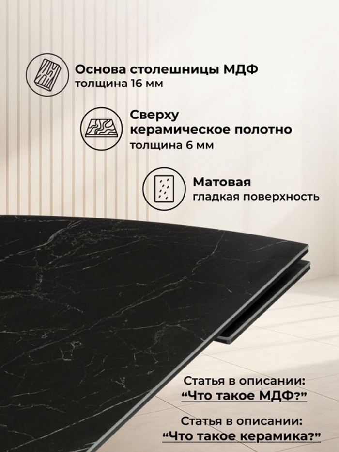 Стол кухонный керамический раздвижной «Катчел-2», 1200(1800)×800×770 мм, цвет черный