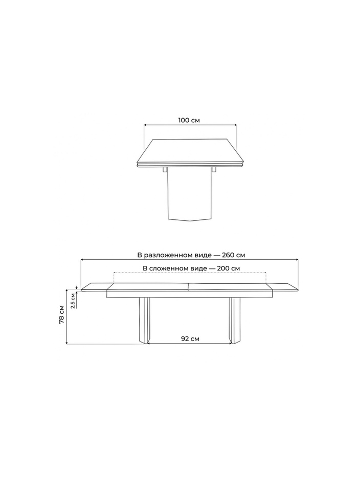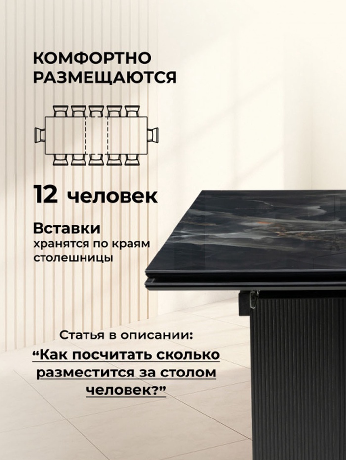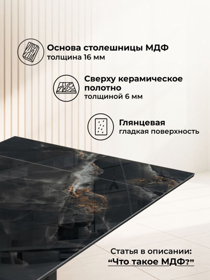 Стол кухонный керамический раздвижной «Монерон», 2000(2600)×1000×770 мм, цвет чёрный