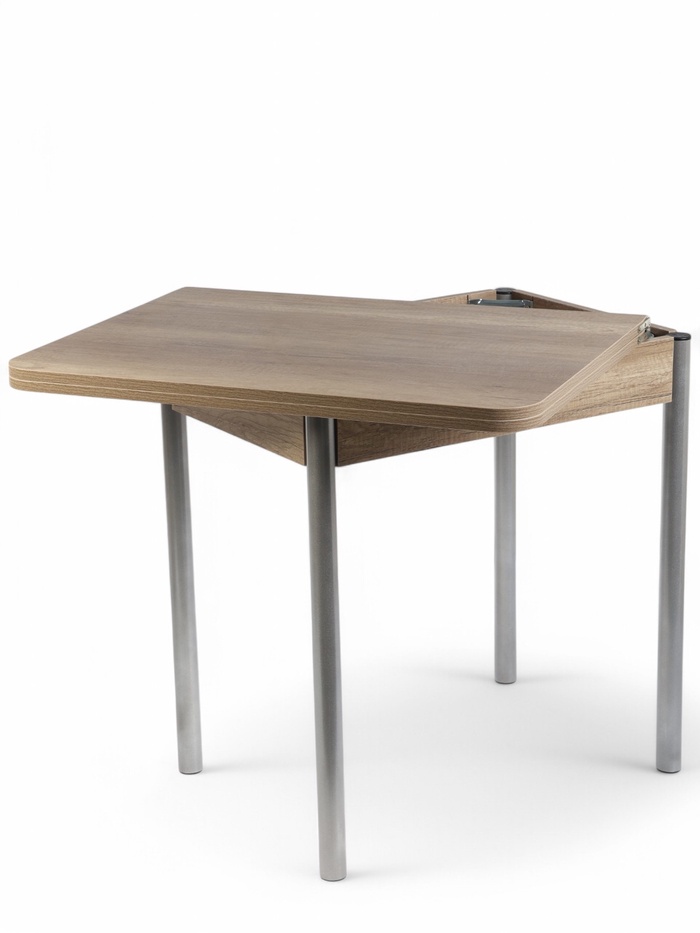 - Компактность: в сложенном виде стол занимает минимум места, что особенно важно для небольших квартир или комнат, где каждый сантиметр пространства на счету.