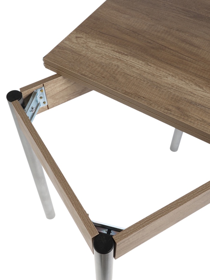 - Функциональность и гибкость: раздвижная конструкция позволяет быстро изменять размер стола — от компактного варианта для повседневного использования до просторного стола для приема гостей или выполнения крупных задач.