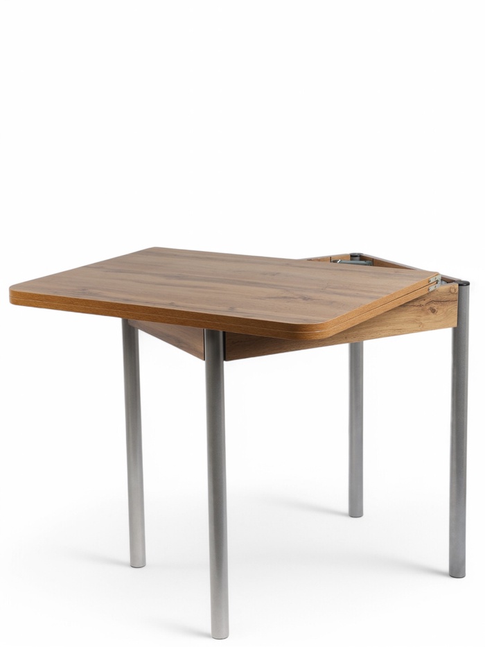 - Компактность: в сложенном виде стол занимает минимум места, что особенно важно для небольших квартир или комнат, где каждый сантиметр пространства на счету.