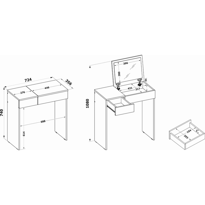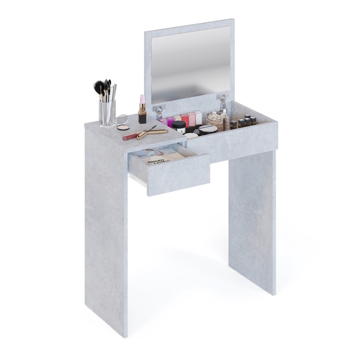 Решение для тех, кто ценит стиль, функциональность и универсальность. С выдвижным ящиком, откидной крышкой столешницы с зеркалом и нишей под ней, станет отличным дополнением вашего пространства для макияжа, и подойдет для других задач.