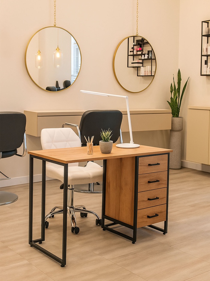Рабочий стол парикмахера ТЭКТУМ ПЛЮС, цвет дуб песочный, чёрный муар