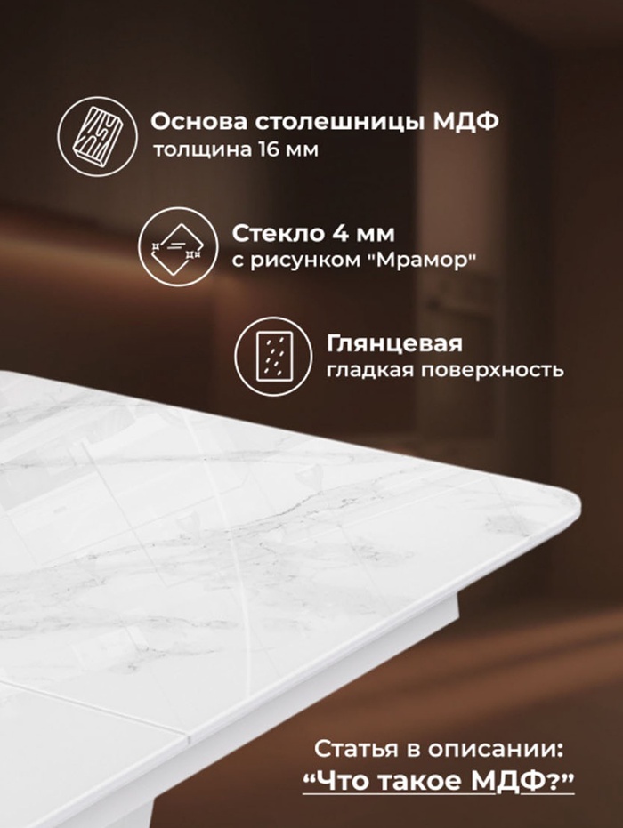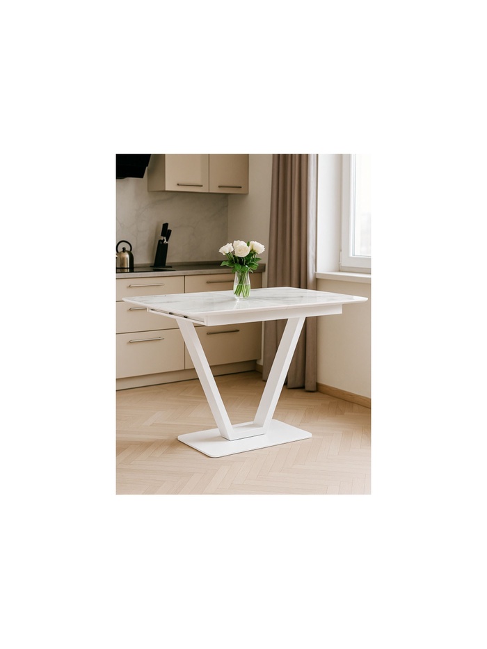 Стол на тумбе Бугун 120х80х77 белый мрамор / белый
