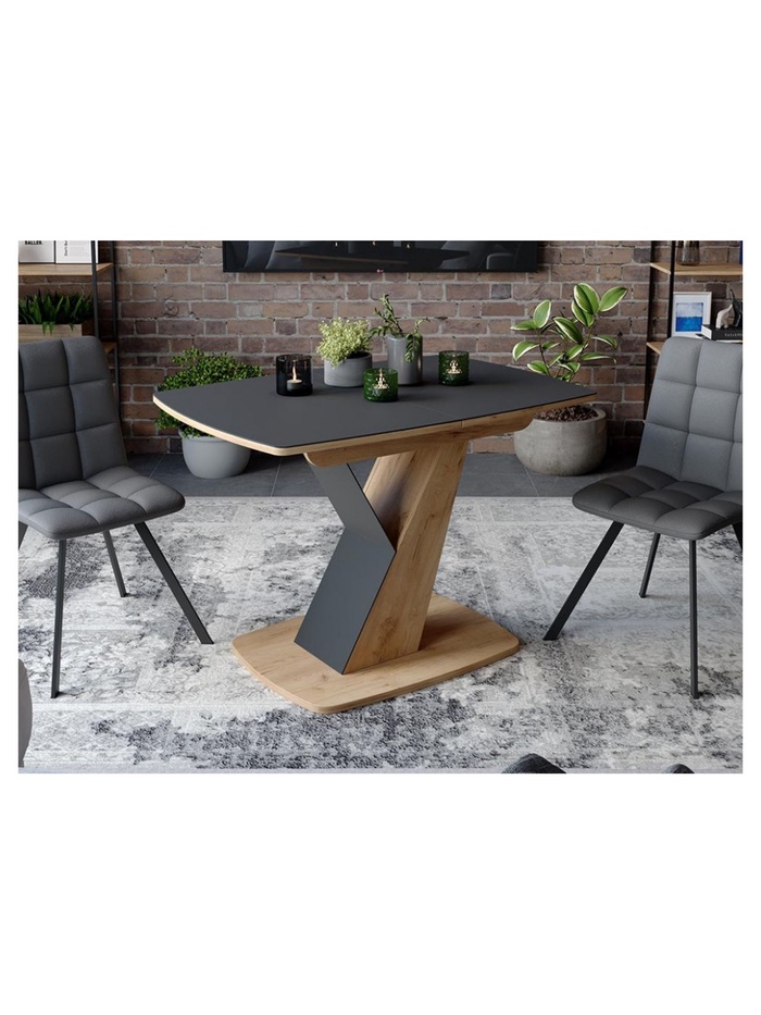Стол на тумбе Гарда Тип 1 дуб крафт золотой / стекло матовое чёрный графит