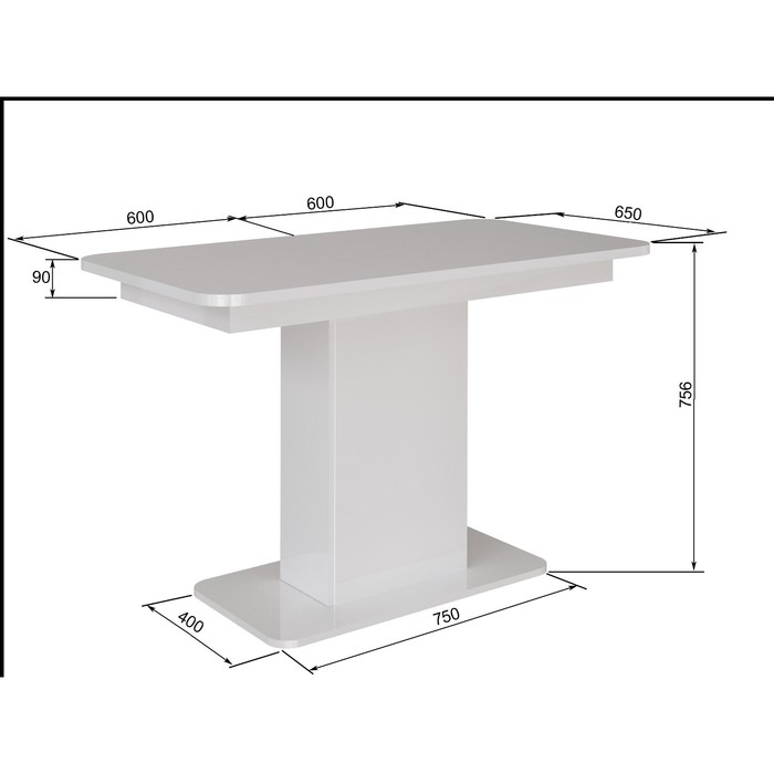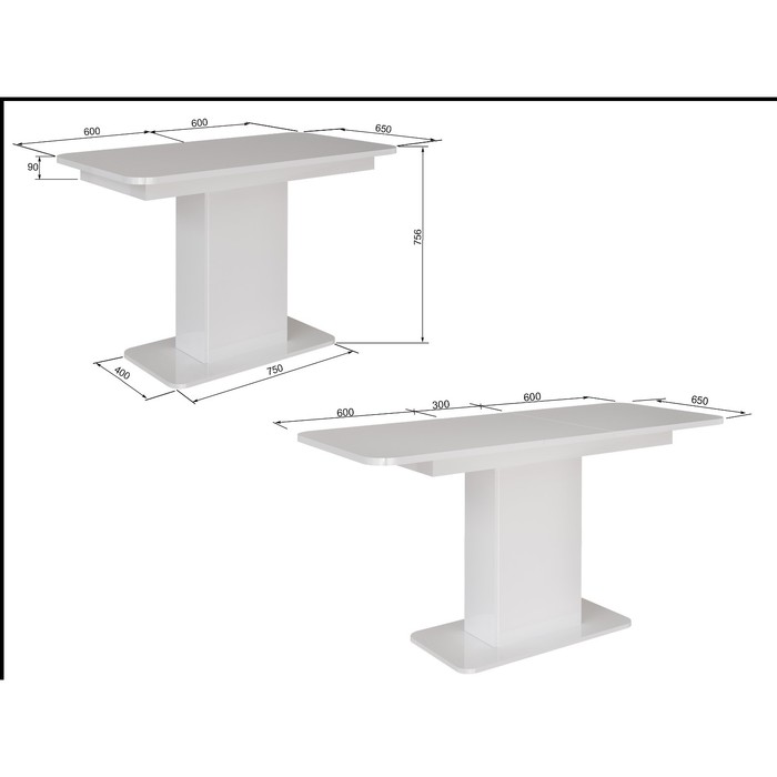 Стол обеденный раскладной СО-3, 1200(1500)х650х756, белый/белый