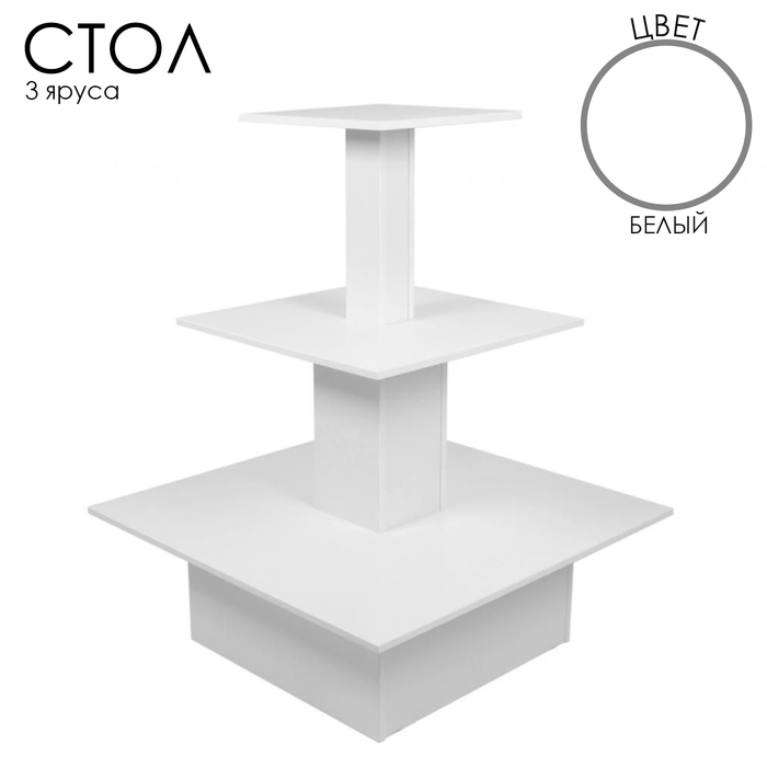Прилавок открытый "Пирамида" с 3 ярусами, 90×90×116 см, ЛДСП, цвет белый — это функциональный и стильный элемент для организации торгового пространства. С размерами 90×90×116 см и тремя просторными ярусами, прилавок идеально подходит для демонстрации товаров, аксессуаров или других предметов, предоставляя легкий доступ для покупателей и поддерживая порядок в торговом зале.