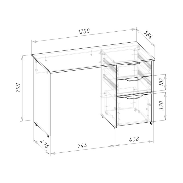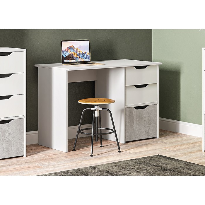 Cтол письменный с ящиками Мико сделает ваше рабочее пространство комнаты функциональным и стильным. Современный дизайн, монохромное решение, гладкие фасады без ручек – ничто не будет отвлекать от решения поставленных задач. Тумба с тремя выдвижными ящиками способна вместить все необходимые для учебы, работы или творчества принадлежности.