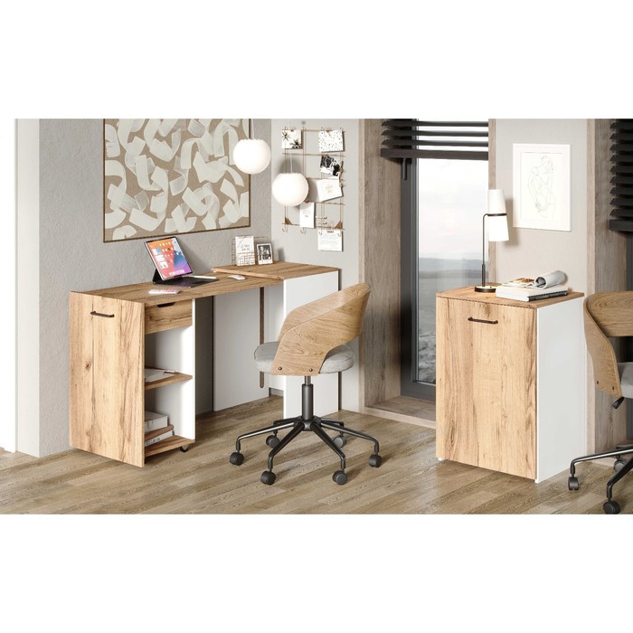 Стол-трансформер – это удобный, вместительный и функциональный стол. Вместительные ниши помогают организовать удобную систему хранения для предметов. Главной особенностью данной модели является ее трансформация из компактной тумбы в просторный письменный стол.