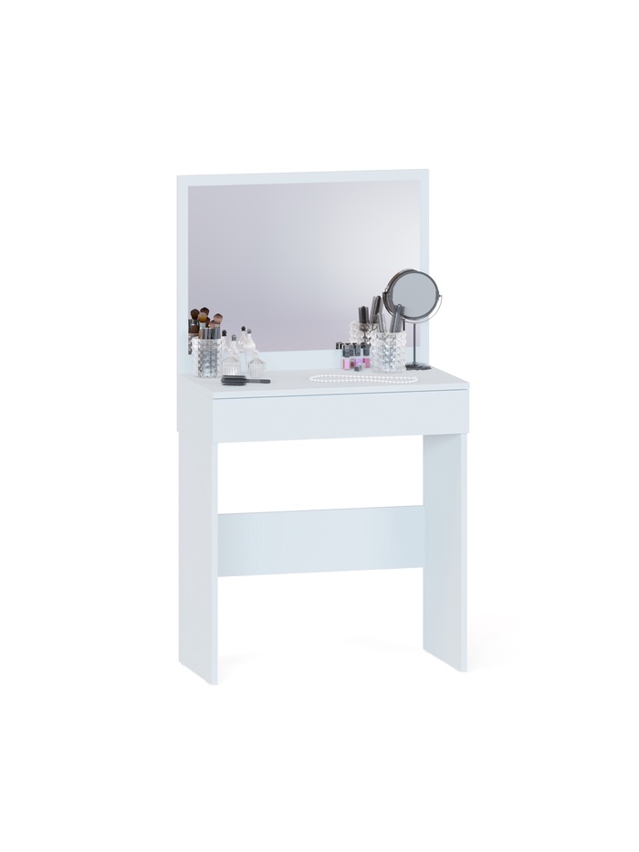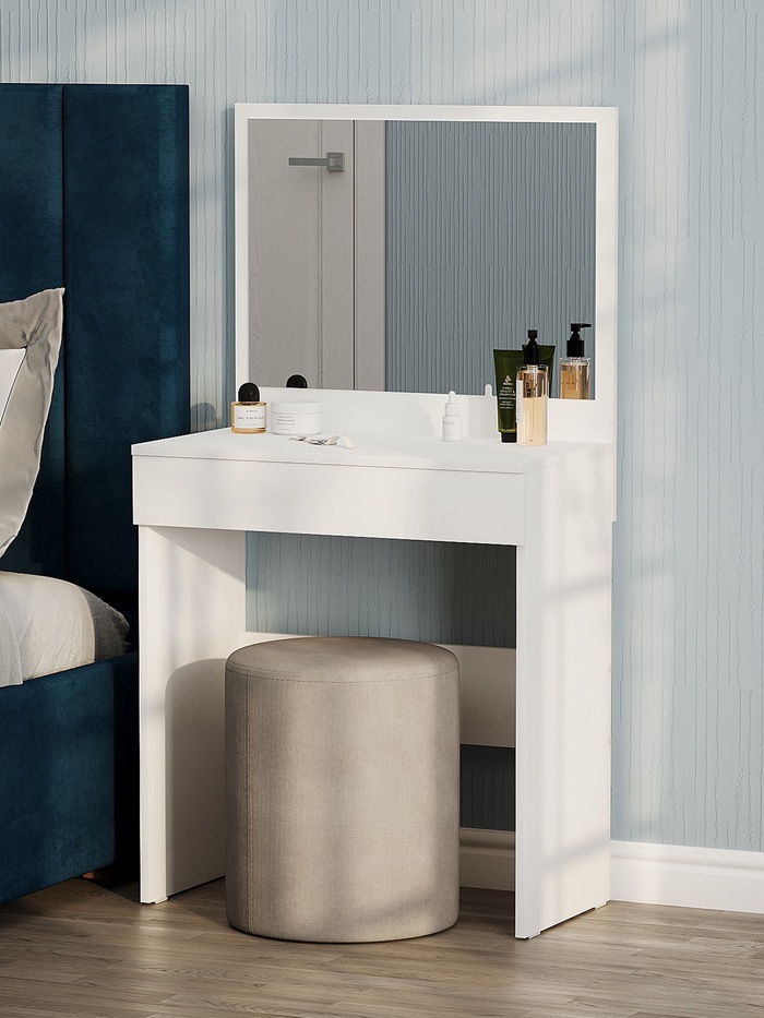 Элегантный туалетный стол сочетает функциональность и минималистичный дизайн, благодаря чему легко вписывается в различные интерьерные решения. Просторная столешница позволяет удобно разместить косметику, парфюмерию и необходимые аксессуары для ежедневного ухода.
