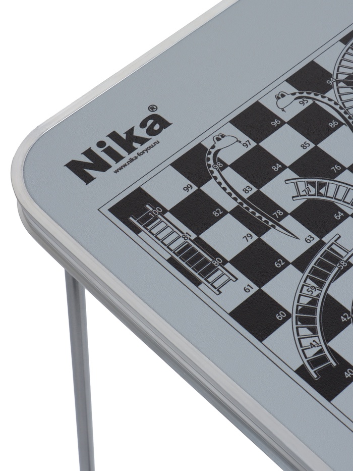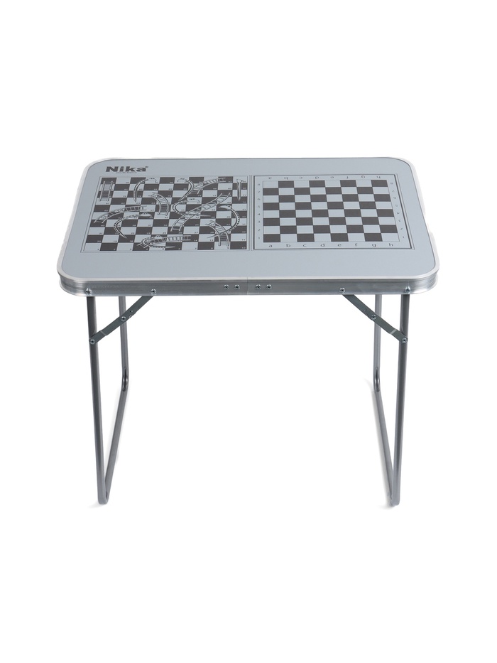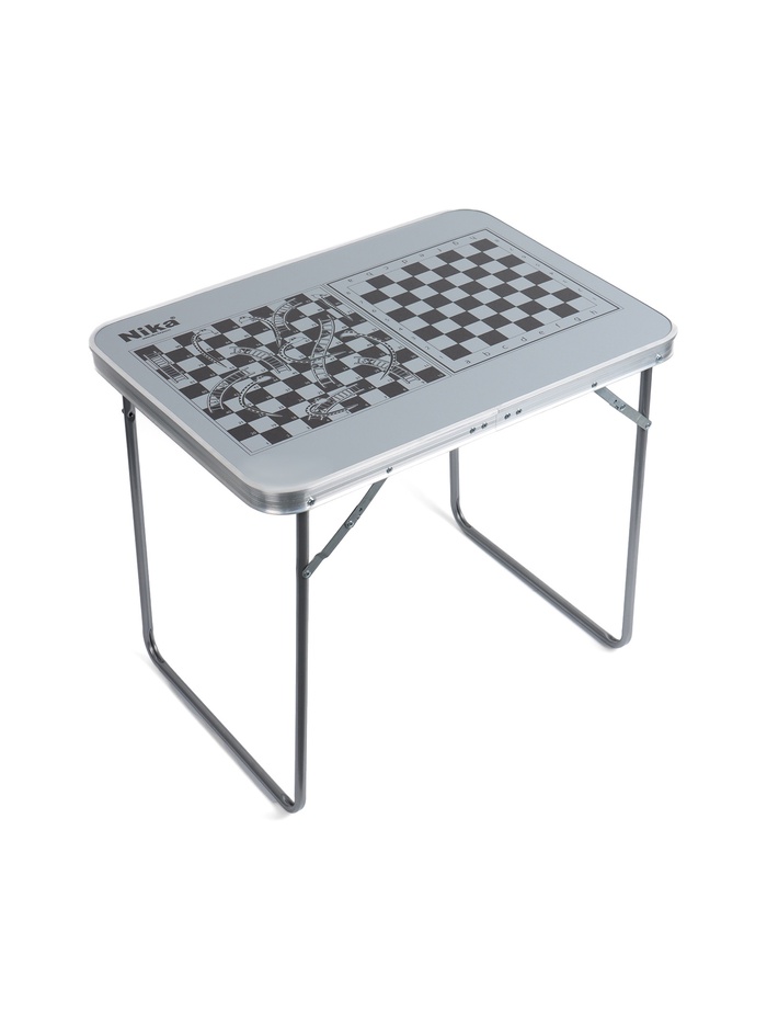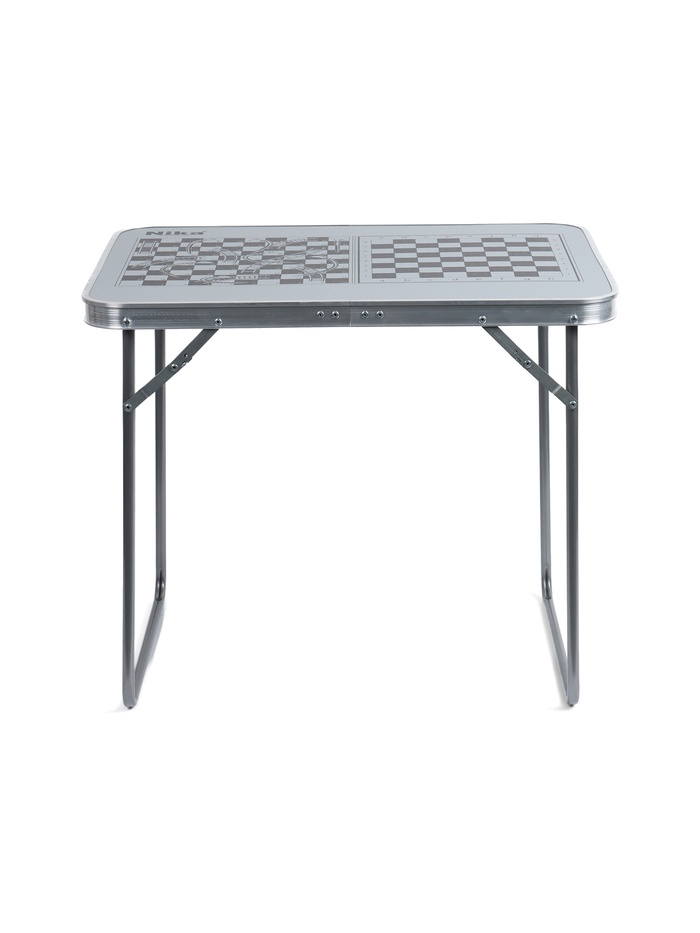 Складной стол – лёгкий и прочный аксессуар для отдыха на природе, пикников, кемпинга и дачи. Универсальный дизайн в цвете «металлик» с принтом «шахматная доска» делает его стильным и практичным для любого использования.