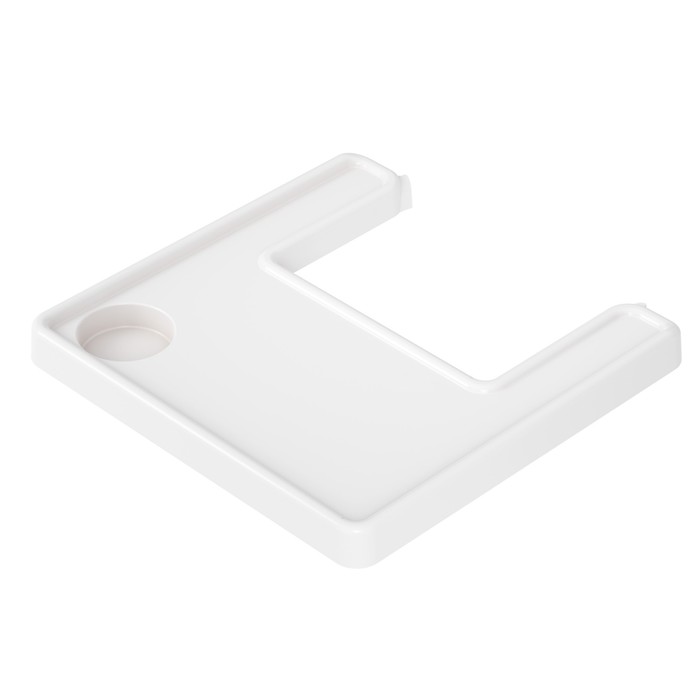 Столешница оснащена бортиком, который предотвращает проливание жидкости на пол и выемкой для детского стаканчика.
