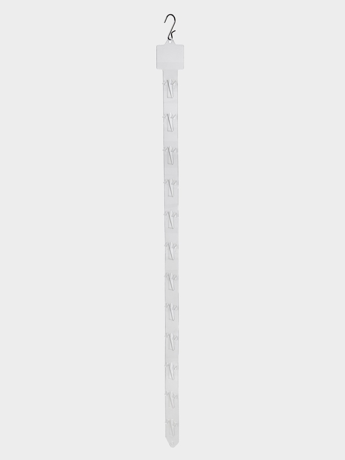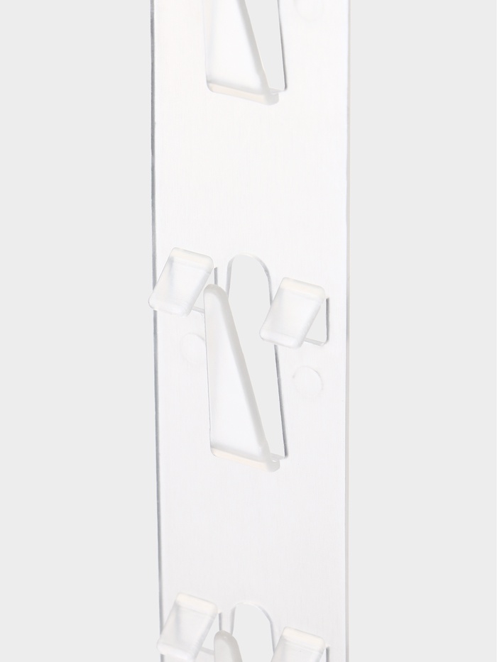 Изготовленная из качественного пластика, эта лента обеспечивает надежность и долговечность. Прозрачный цвет позволяет ей гармонично вписаться в любой интерьер, не отвлекая внимание от ваших любимых предметов. Каждый крючок способен надежно удерживать различные аксессуары, от кухонных принадлежностей до одежды и украшений, что делает вашу жизнь более организованной.