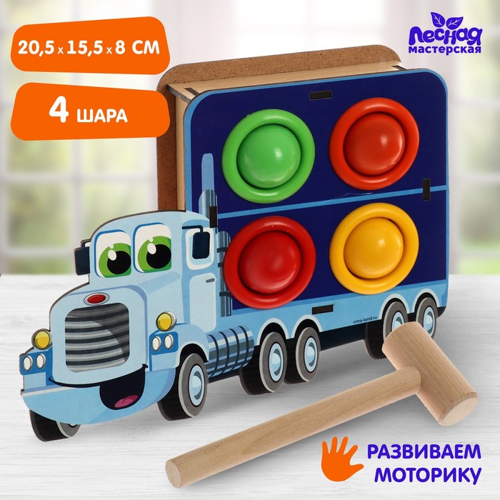 «Машинка» помогает ребёнку освоить важные навыки: развивать мелкую моторику, тренировать координацию движений и улучшать внимание. Играя с молотком и шариками, малыш учится выполнять последовательные действия, достигать целей и развивать целеустремлённость. Это не только занимательное занятие, но и источник новых знаний, которые формируют базовые навыки логики и восприятия. Каждый этап игры стимулирует самостоятельность и уверенность в своих силах.